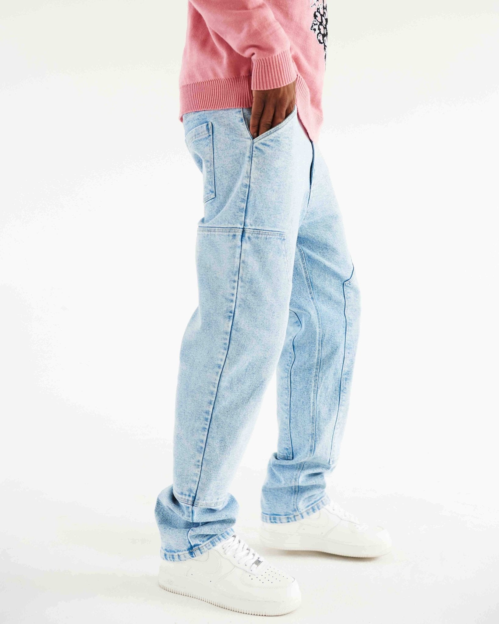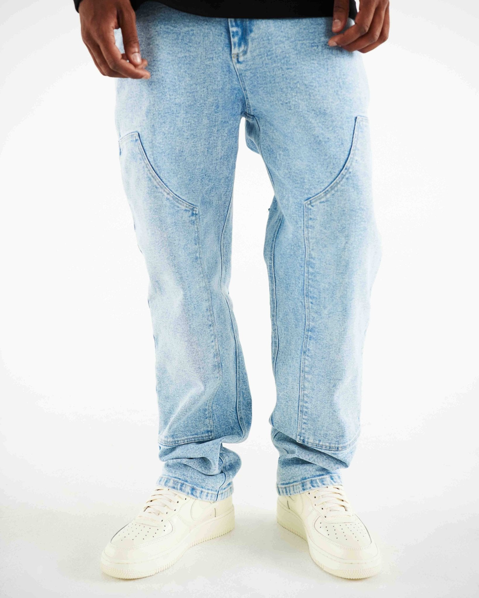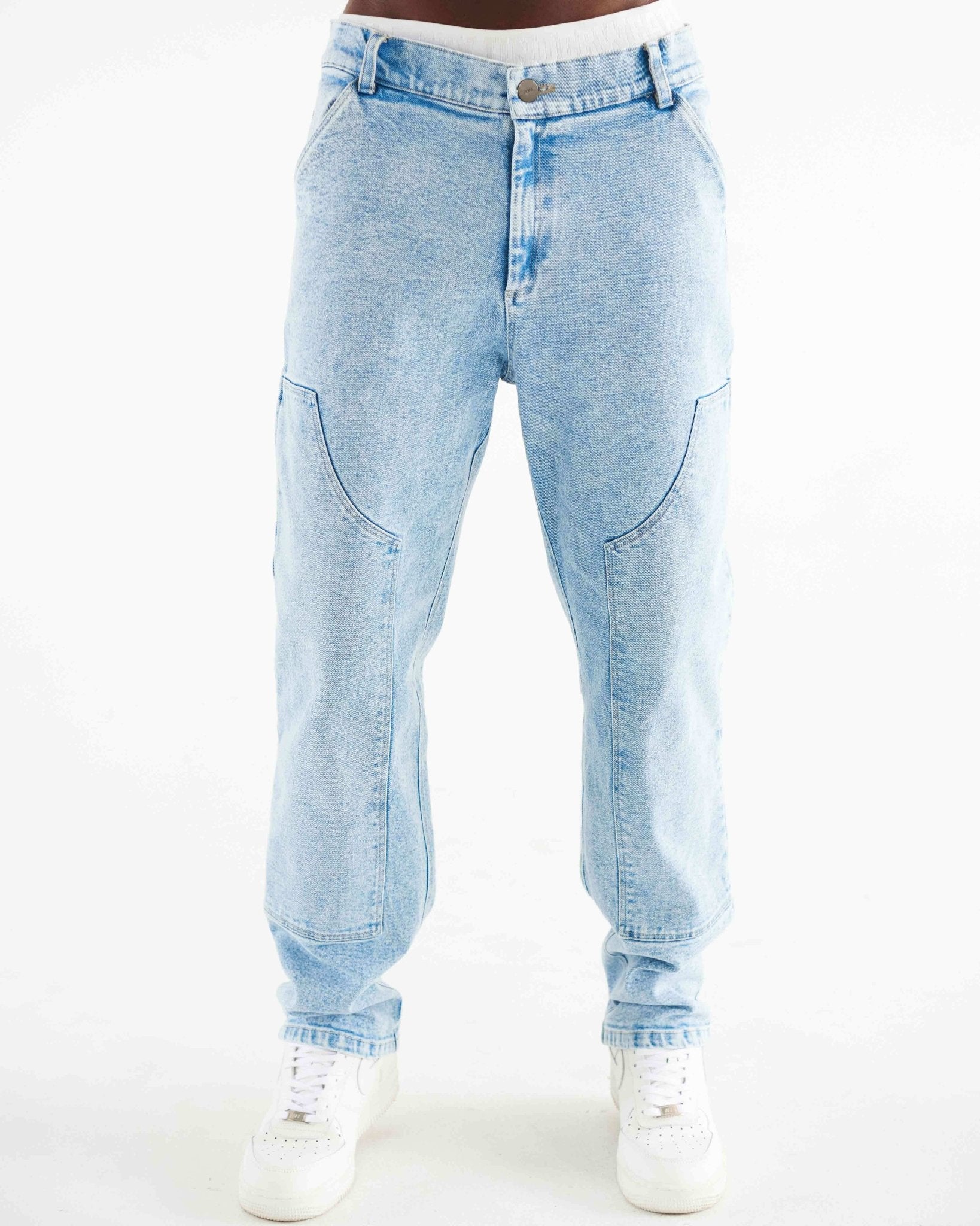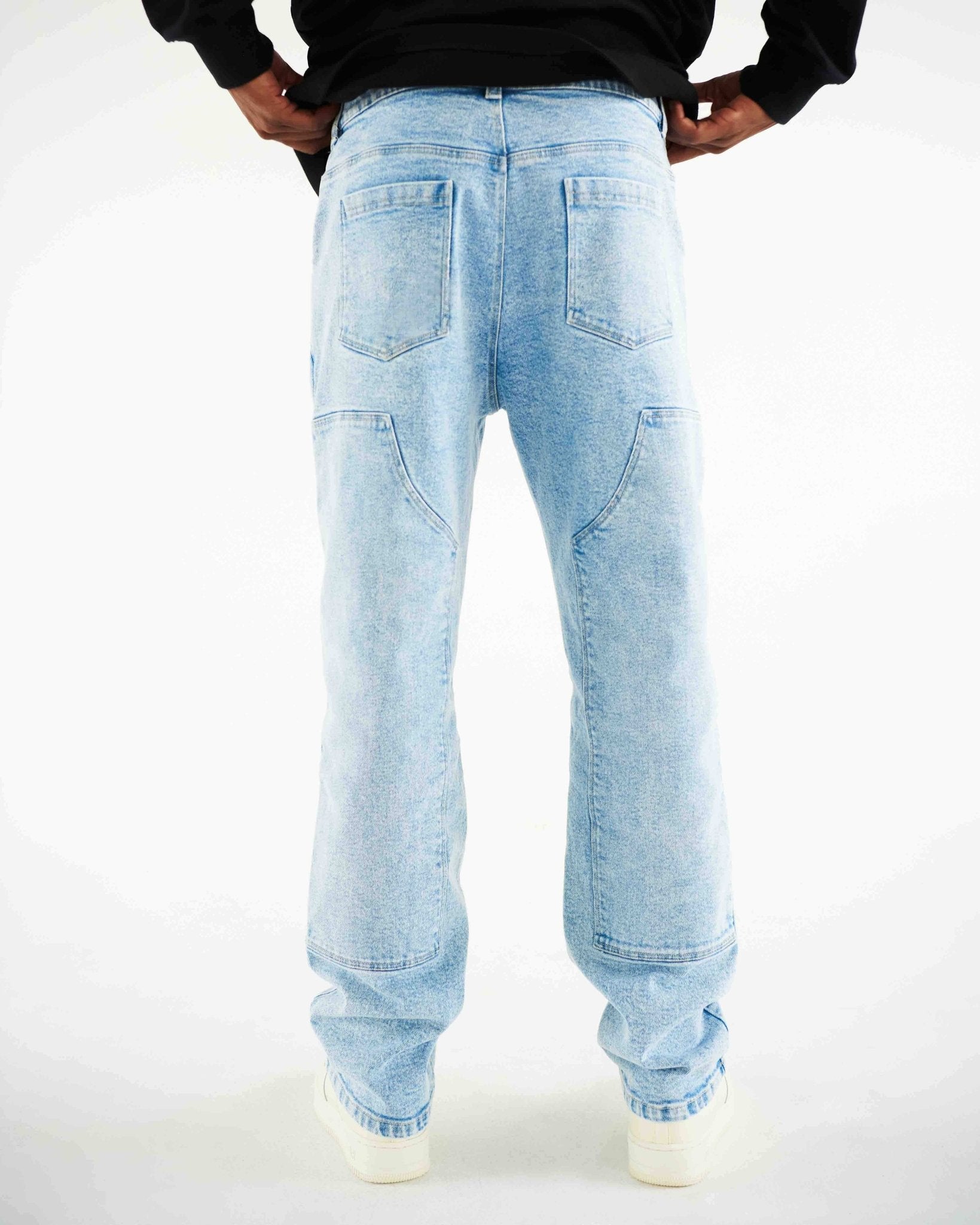 We wanted to be a part of a group but didn't fit in, so we created our own gang, and there's no way back. Pantalón carpintero en Drill bota recta con parches sobrepuestos en el delantero y bolsillo parche en el posterior.