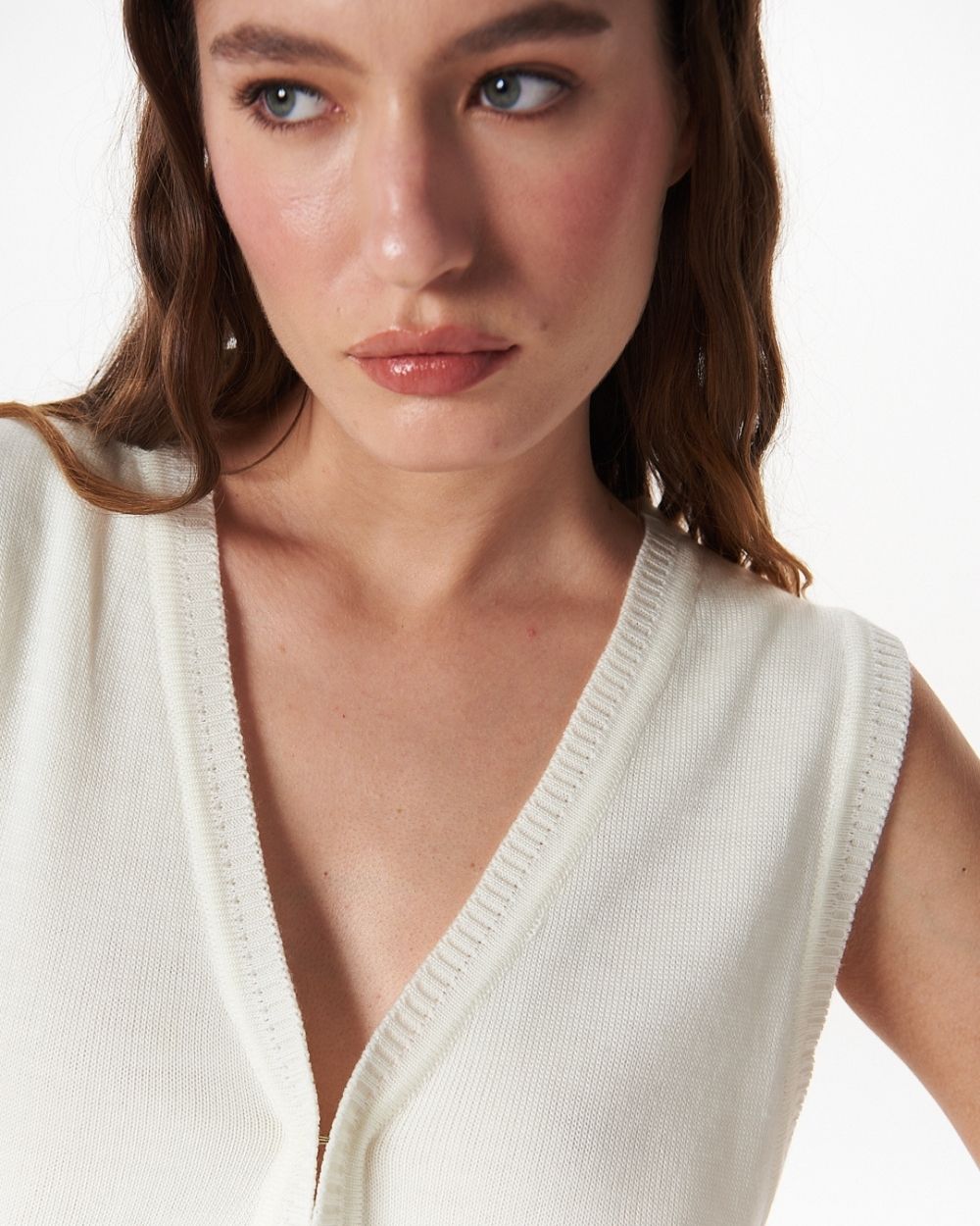Too hot to think straight!! Un vest simplemente perfectooo. Chaleco tejido corto, con broche para cerrar y doble capa para mayor cobertura.