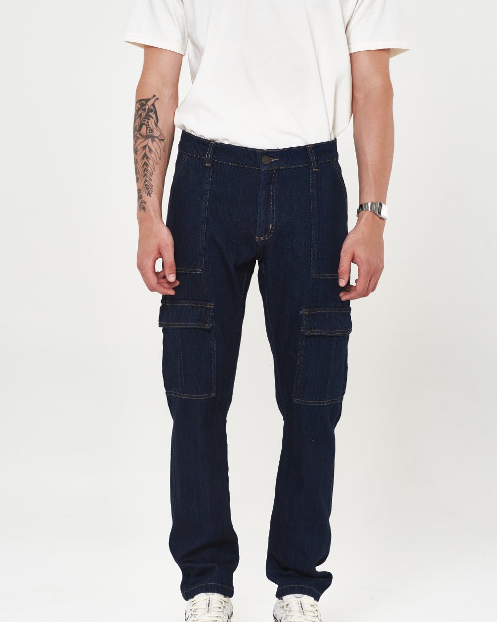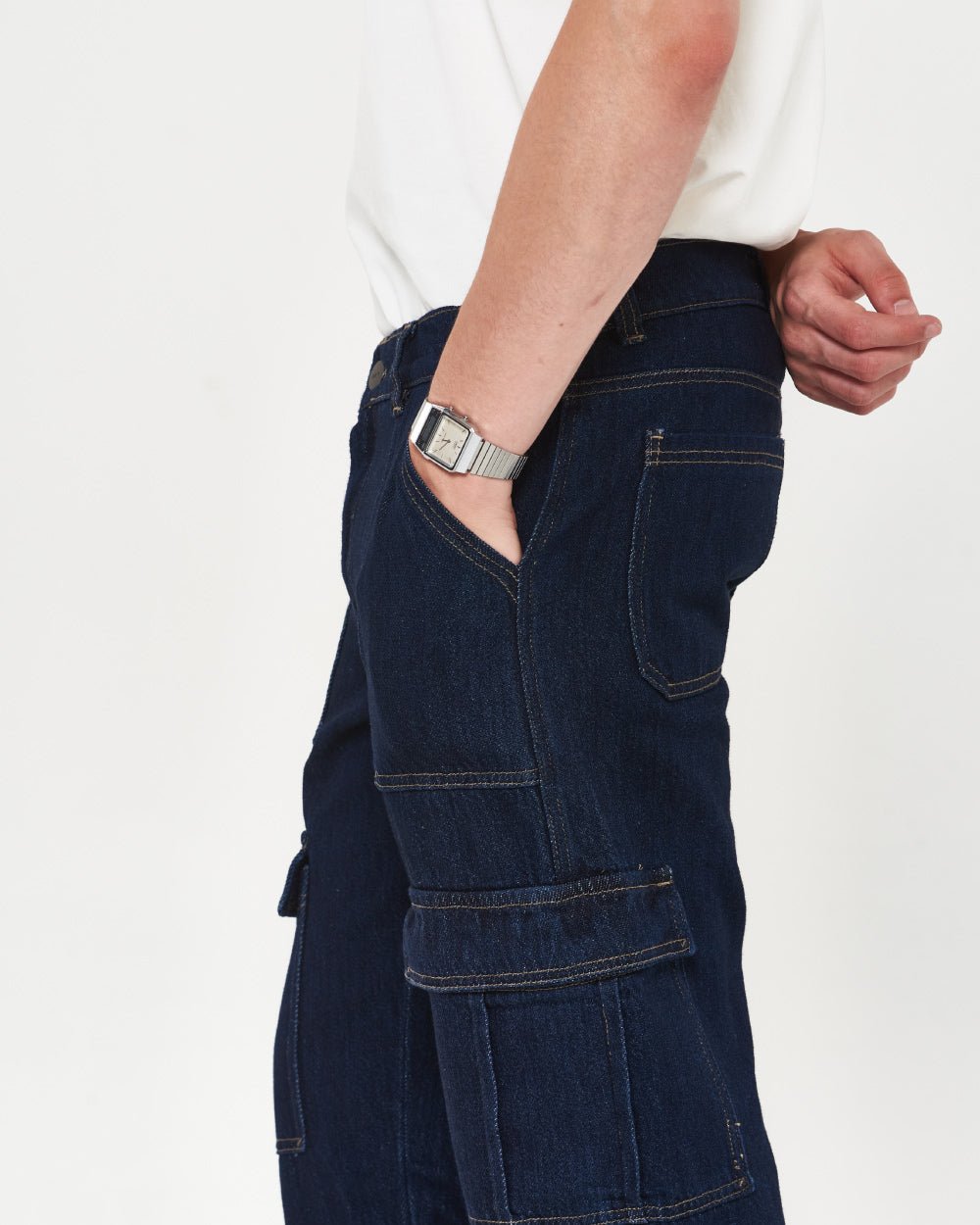 Jeans bota recta, silueta clásica con bolsillos chinos de parche y bolsillos con tapa extragrandes.