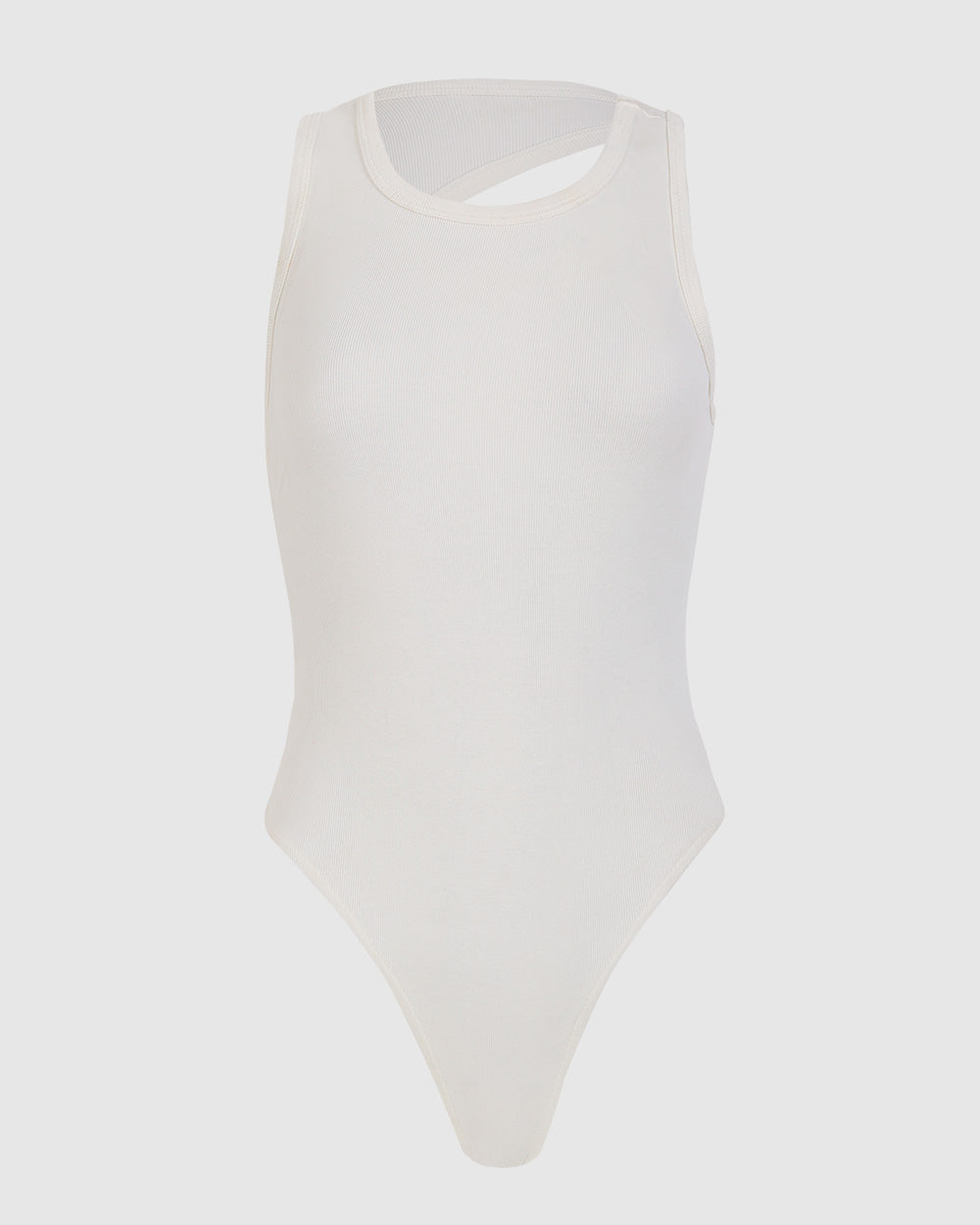 Minimal mood. Bodysuit con espalda asimétrica, broches para cerrar y escote delantero redondo tipo tank top.