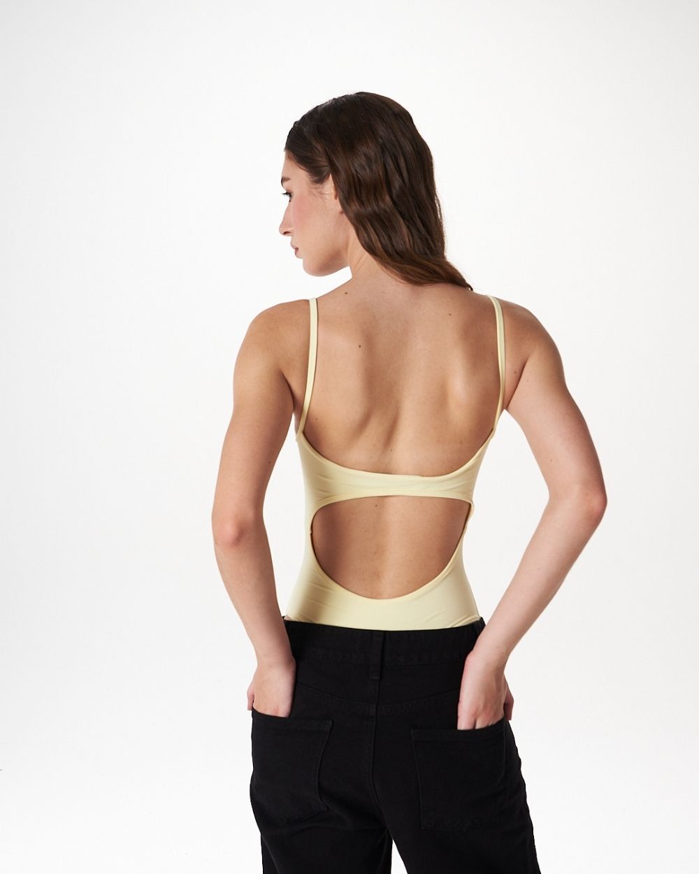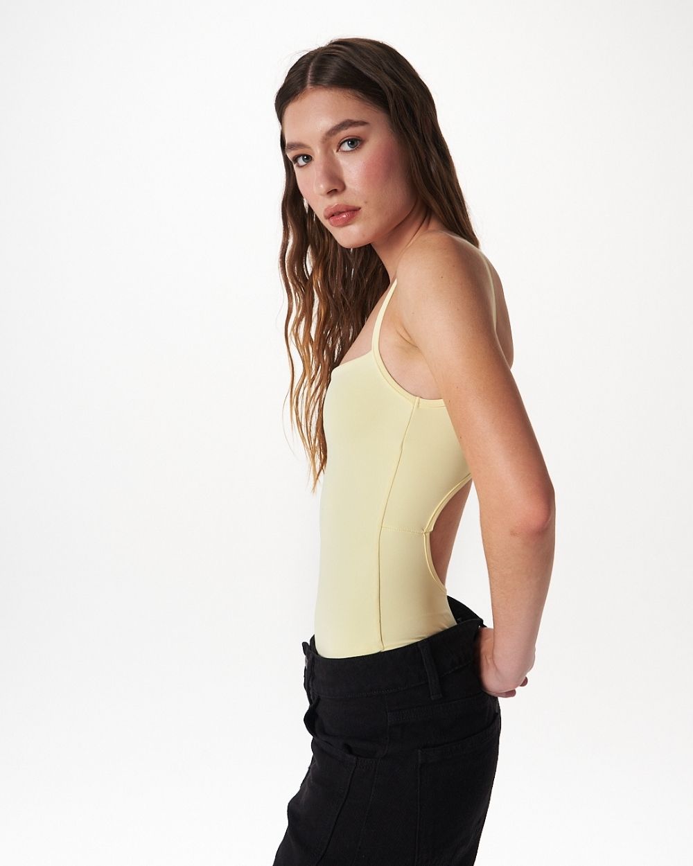 A butter yellow fantasy. Escote en la espalda y panty tipo brasilera. Hecho 100% nylon, su ajuste perfecto y flexibilidad lo hacen el más cómodo de todos.