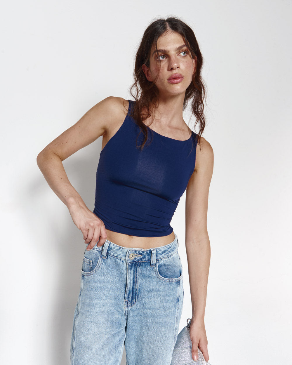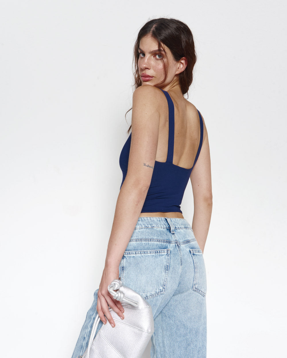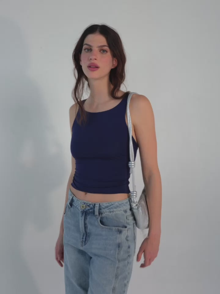 Cool in navy, easy to wear. Crop Top tipo halter con cargaderas en espalda gruesas.