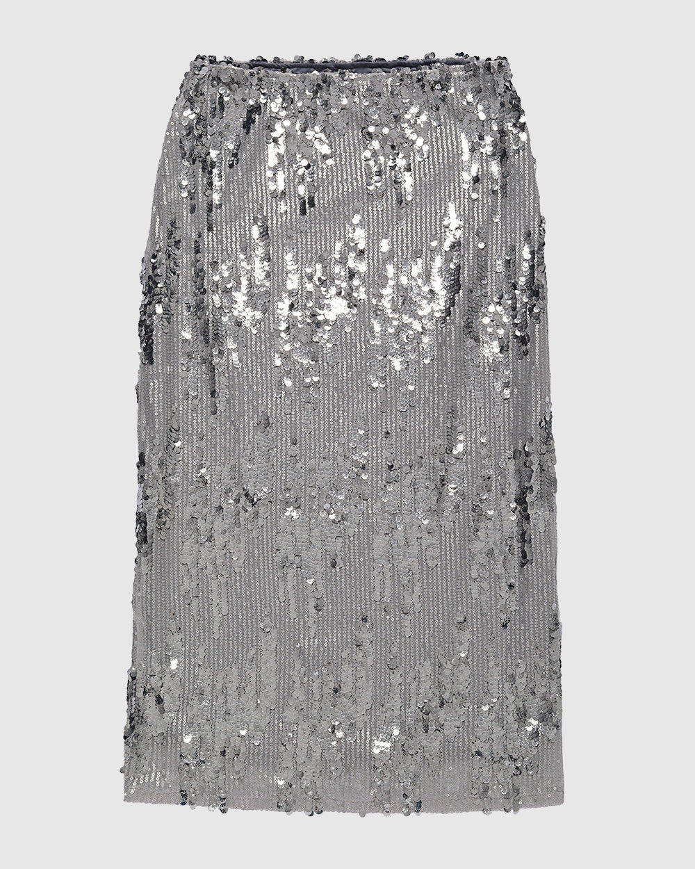 A shiny moment. Falda midi en lentejuelas, con cintura elástica y forro mini.