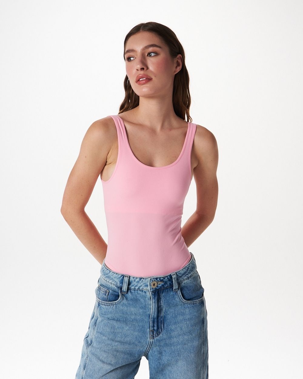 Malibu it-girl energy. Bodysuit tejido seamless, con broches. Tiene un top interior que da mayor soporte y cobertura, no necesitas capas adicionales.