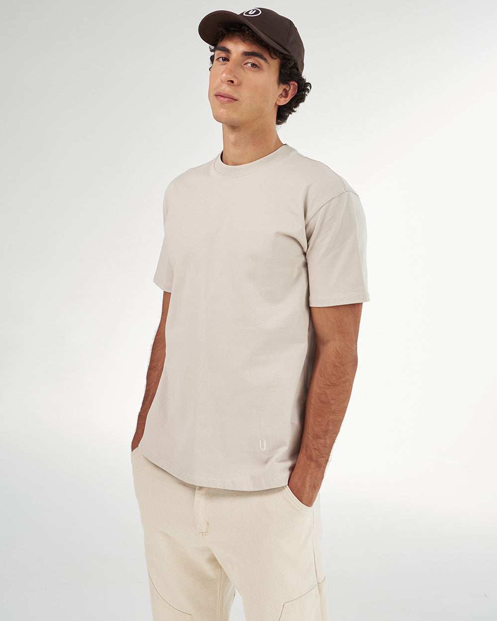 Streetwear essentials done right. Camiseta beige ligeramente oversized con bordado en punto corazón - detalles que marcan la diferencia para máxima comodidad sin sacrificar estilo.