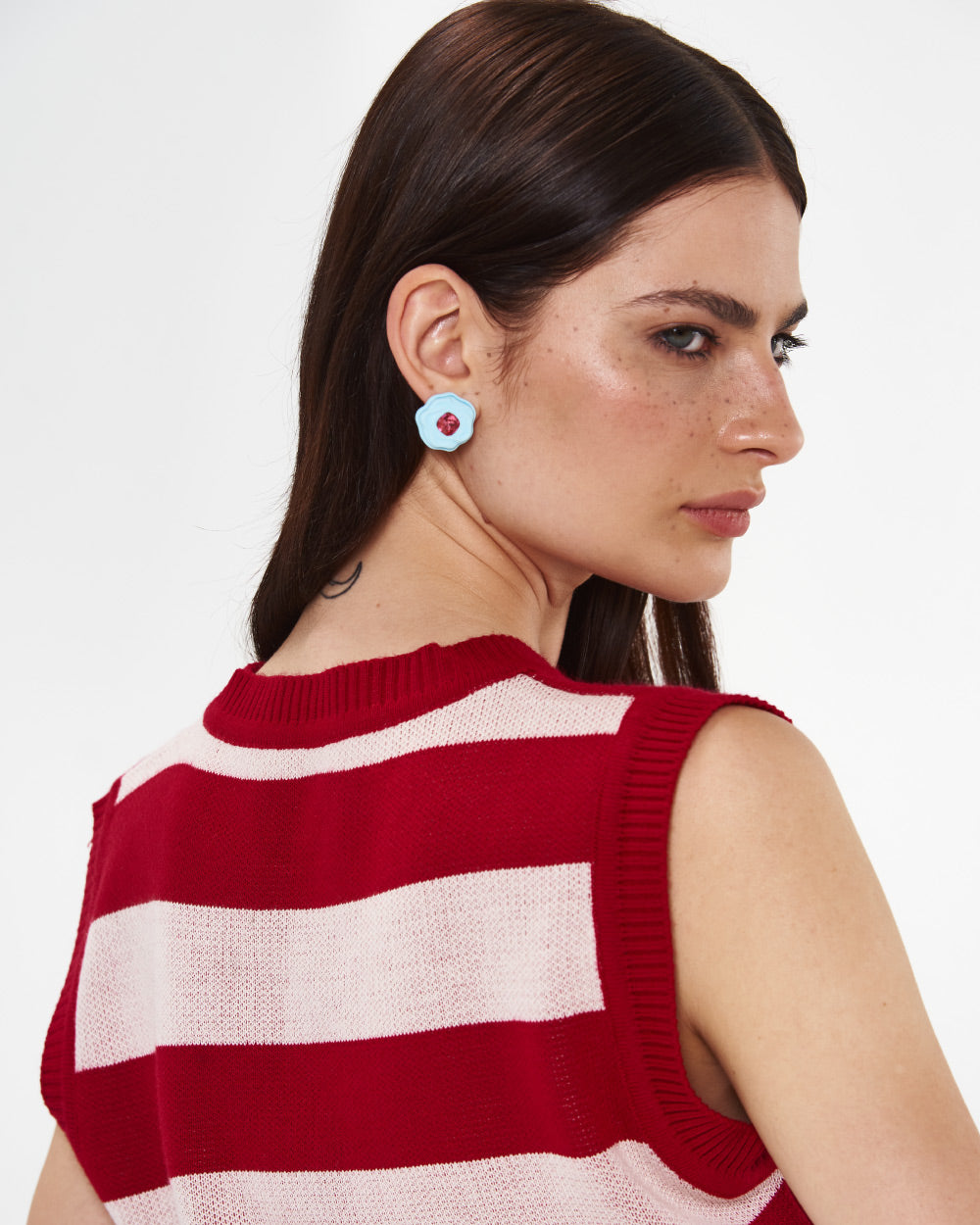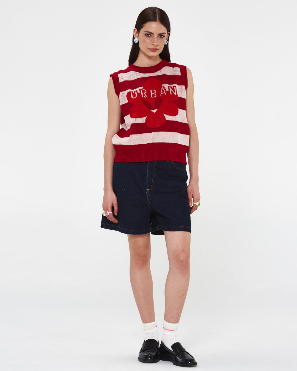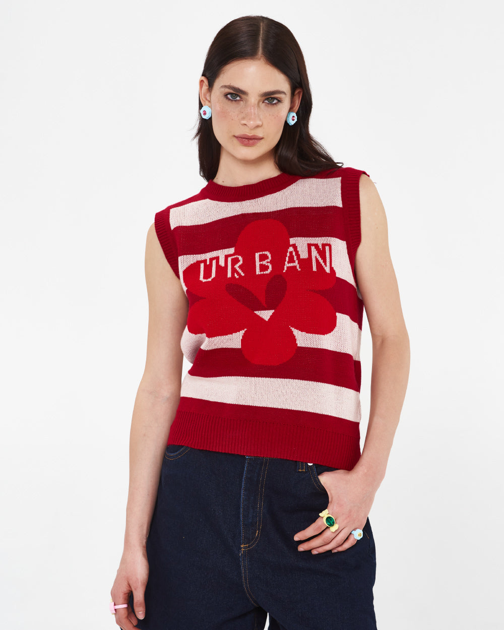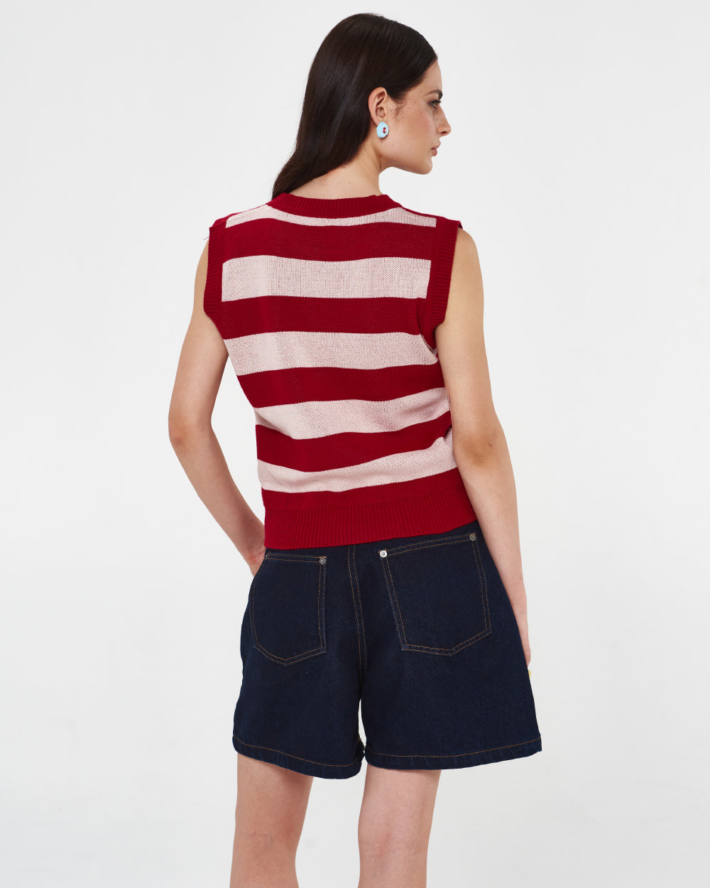 Anything but basic. Chaleco en tejido a rayas tipo Jacquard, pretina y cuello en contraste.