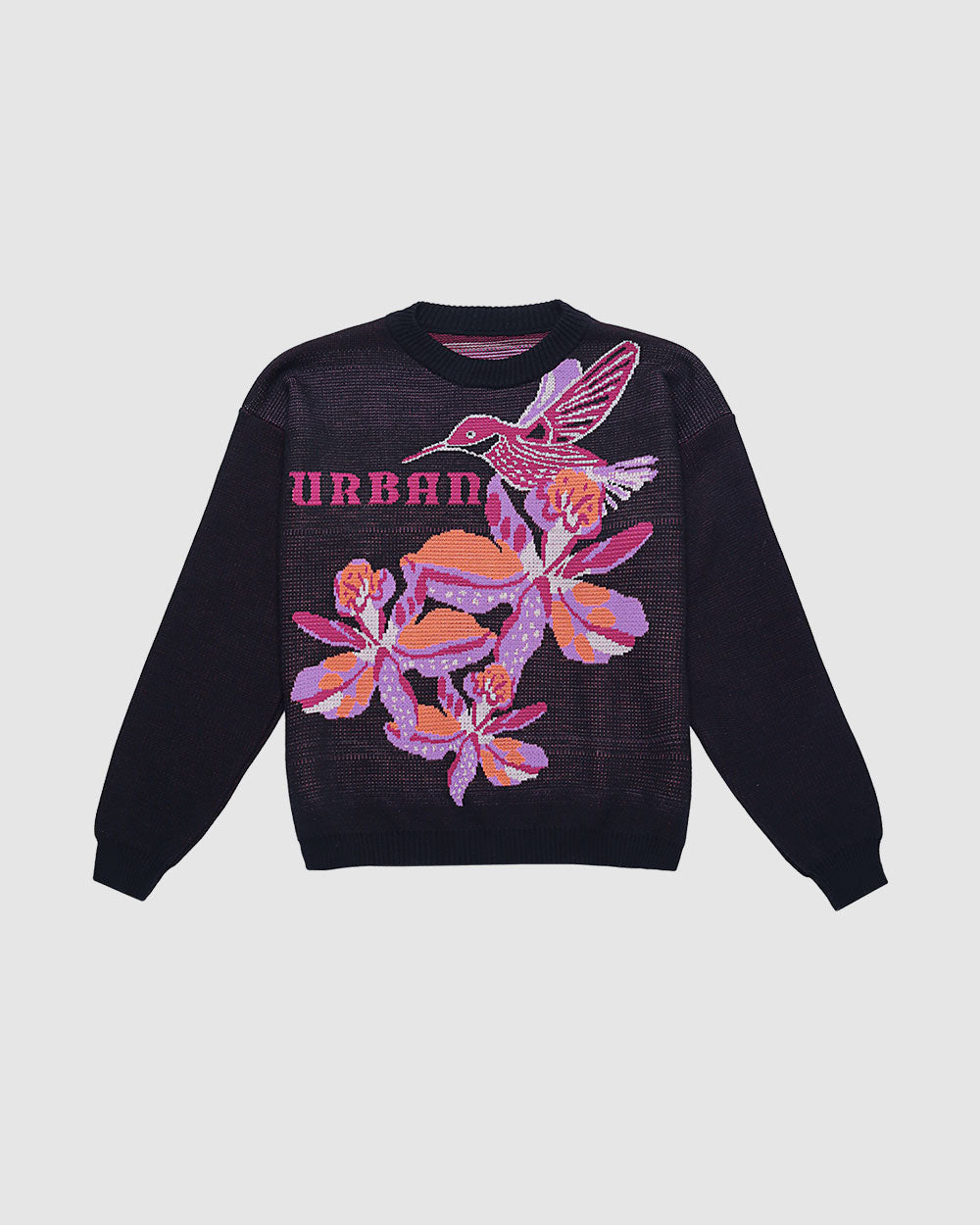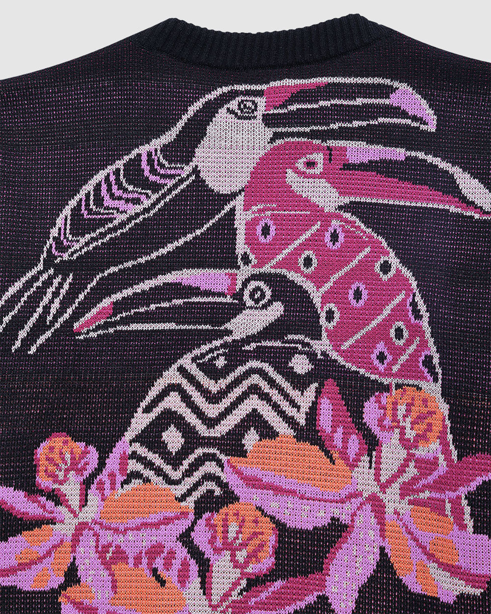 Just the coolest sweater. Crew neck en tejido tipo jaquard, con gráficos tanto en frente como en espalda.